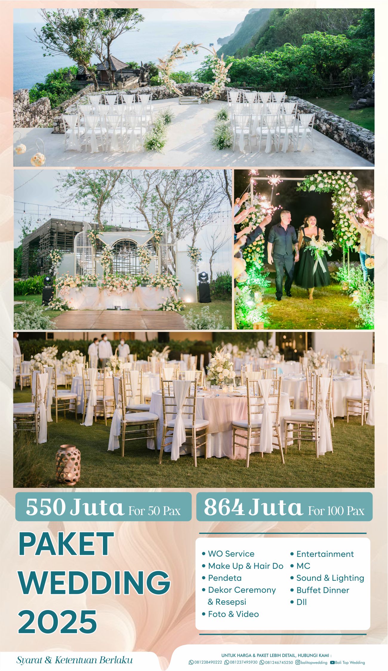 Berikut ini adalah paket Ceremony & Resepsi dan Resepsi . Untuk venue Alila Uluwatu