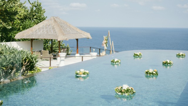 Karang Saujana Estate terletak di Bukit Uluwatu yang tenang di Kabupaten Pandawa yang terkenal dengan pantai putih dan pemandangan laut biru jernih. Karang saujana merupakan komplek villa pribadi yang menawarkan venue garden wedding yang private untuk 50 pax dengan suasana indah pemandangan laut tanpa halangan dari setiap vila. Memiliki Infinity pool yang cantik, karang saujana juga sangat cocok untuk perhelatan water wedding yang membentang langsung ke pantai pandawa yang menawan. Berada pada area yang private, team dengan akases yang terbatas Bali Top Wedding sangat menyarankan penggunaan shuttle sebagai transportasi para undangan untuk mencapai villa ini.