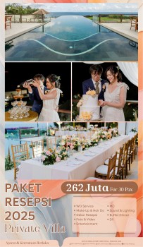 Berikut ini adalah paket Ceremony & Resepsi dan Resepsi . Untuk venue Karang Saujana Estate