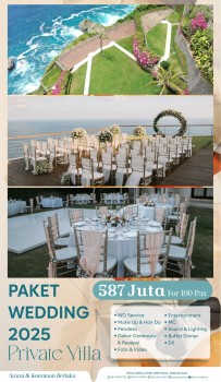The Edge Uluwatu terletak di Bali selatan yang terkenal dengan pemandangan tebing yang menawan. Terletak 1 jam dari Bandar Udara I Gusti Ngurah Rai, The Edge Uluwatu menawarkan beberapa venue untuk sobat bali top mengucapkan janji pernikahan dan dinner resepsi. Untuk pengucapan janji pernikahan yang disaksikan oleh 50 orang terkasih bisa dilakukan di The Villa, sedangkan untuk Dinner Resepsi bisa dilakukan di The View dengan kapasitas ideal 150 pax. Dengan dekorasi lampu lampu yang gemerlap akan menambah suasana mewah di malam hari disaat sobat Bali top melangsungkkan resepsi. Villa ini juga dilengkapi dengan mini theatre, living room & play ground untuk anak – anak. hal ini menjadi salah satu solusi bagi undangan yang membawa anak – anak mengingat letak venue yang berada di pinggir tebing.