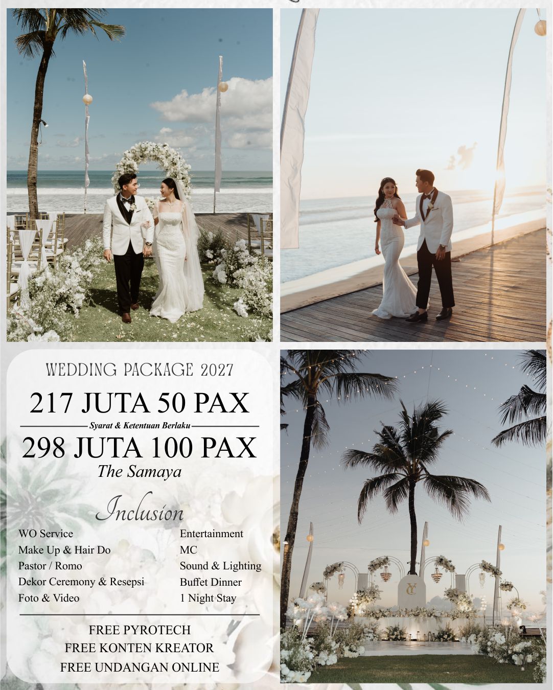 Berikut paket wedding terbaik yang kami tawarkan khusus untuk venue The Samaya :